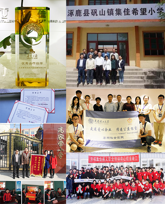 責(zé)任于心,擔(dān)當(dāng)于行。作為一家有溫度的企業(yè),集佳在用心為企業(yè)提供知識(shí)產(chǎn)權(quán)保護(hù)策略的同時(shí),也一直自覺(jué)承擔(dān)各項(xiàng)社會(huì)責(zé)任,熱心參與各項(xiàng)公益事業(yè),發(fā)揚(yáng)行業(yè)擔(dān)當(dāng)精神,堅(jiān)持不懈用愛(ài)心回饋社會(huì)。尤其是在教育領(lǐng)域,集佳不僅重視專業(yè)人才培養(yǎng),通過(guò)愛(ài)心獎(jiǎng)學(xué)金、集佳班、提供社會(huì)實(shí)踐等方式與中國(guó)政法大學(xué)、同濟(jì)大學(xué)、大連理工大學(xué)等眾多高校合作培養(yǎng)知識(shí)產(chǎn)權(quán)專業(yè)人才,更是特別關(guān)注青少年的教育和成長(zhǎng)。目前,集佳已援建13所希望小學(xué),并多次進(jìn)行回訪,持續(xù)關(guān)注孩子們的學(xué)習(xí)和成長(zhǎng),了解學(xué)校和孩子們的真實(shí)所需,提供最有效的幫助。同時(shí),集佳設(shè)立了多項(xiàng)助學(xué)基金,對(duì)多所小學(xué)、中學(xué)、技術(shù)學(xué)校等提供幫扶。集佳期望,通過(guò)一點(diǎn)一滴的幫助,讓孩子們的生活和學(xué)習(xí)更加豐富多彩,讓他們感受著愛(ài)的力量,懷抱希望,用優(yōu)異的學(xué)業(yè)報(bào)效祖國(guó),用同樣的關(guān)愛(ài)回報(bào)社會(huì)。