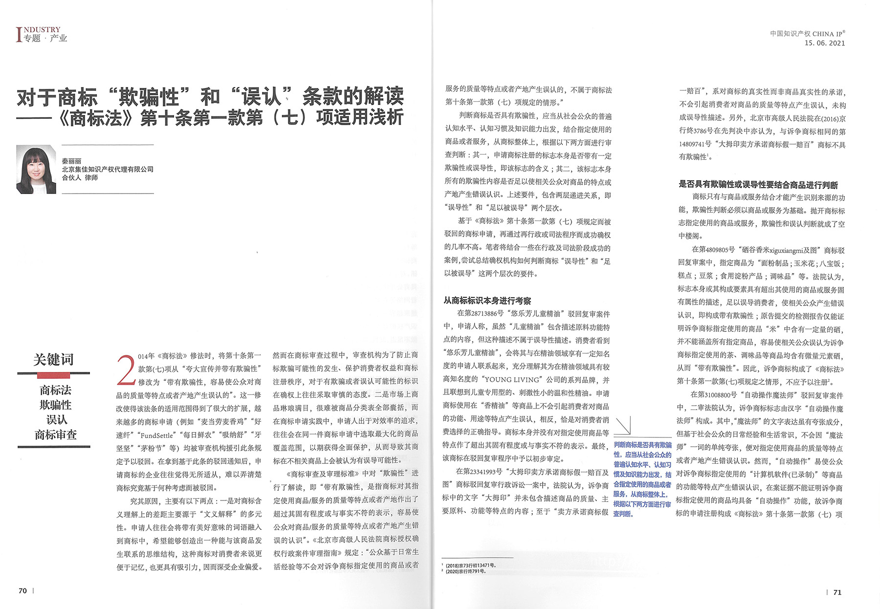 集佳文章《對(duì)于商標(biāo)“欺騙性”和“誤認(rèn)”條款的解讀——<商標(biāo)法>第十條第一款第(七)項(xiàng)適用淺析》