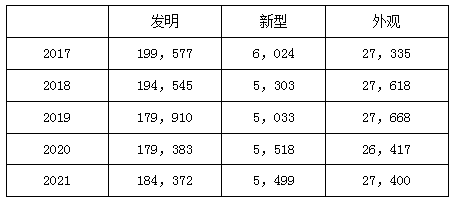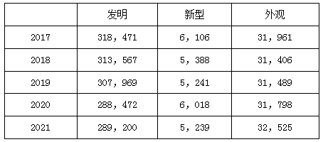 前5個國家外觀專利申請量統(tǒng)計(除日本本國申請):