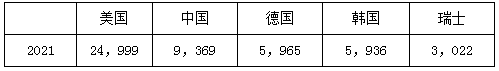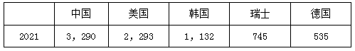 前5個國家發(fā)明專利申請量統(tǒng)計(除日本本國申請):