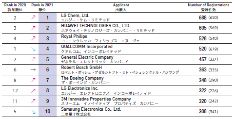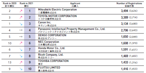 前10大日本國內企業(yè)發(fā)明專利注冊量: