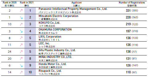 前10大日本國內企業(yè)外觀設計注冊量: