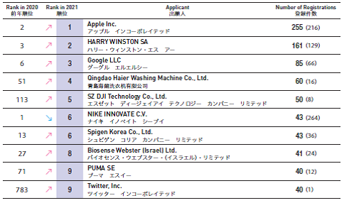 前10大日本境外企業(yè)外觀設計注冊量: