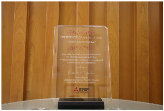 據(jù)悉,三菱電機每年在其全球范圍內(nèi)合作的事務(wù)所中評選一至兩家優(yōu)秀事務(wù)所進行表彰,集佳是此次獲獎的唯一一家中國事務(wù)所,并且是2019年以來第二次獲此殊榮。此次三菱電機表彰的事項為:“在為我社防止外觀設(shè)計假冒申請對策而提出的實用的商品目錄公證方法的提案中做出的卓越貢獻”。在與表彰事項相關(guān)的工作中,集佳人員工作專業(yè)、細致、認真、及時,得到了客戶的信任和高度評價。