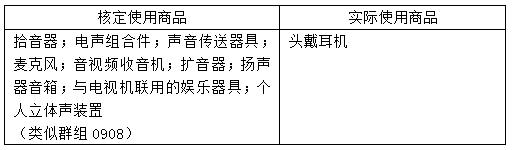 由《類似商品和服務(wù)區(qū)分表》可知,“頭戴耳機(jī)”為類似群組0908的規(guī)范商品名稱,而系爭商標(biāo)的核定使用商品也均屬于類似群組0908。很顯然,實際使用商品和核定使用商品完全屬于相同的類似群組,構(gòu)成類似商品。