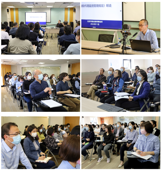 主講人張亞洲律師從《規(guī)定》制定的背景及過(guò)程、規(guī)定的主要內(nèi)容、代理機(jī)構(gòu)應(yīng)特別注意的風(fēng)險(xiǎn)等角度對(duì)《規(guī)定》進(jìn)行了詳細(xì)而深入的解讀。與會(huì)人員在認(rèn)真聆聽張亞洲律師的講解后,針對(duì)《規(guī)定》的新內(nèi)容,結(jié)合商標(biāo)代理與維權(quán)工作中的重點(diǎn)難點(diǎn)問(wèn)題展開了熱烈的交流討論,學(xué)習(xí)氛圍濃烈而生動(dòng)。最后,于澤輝所長(zhǎng)強(qiáng)調(diào),全體員工務(wù)必認(rèn)真領(lǐng)悟《規(guī)定》中的最新要求,在工作中要進(jìn)一步加強(qiáng)行業(yè)自律,遵循誠(chéng)實(shí)守信原則,為客戶提供更加優(yōu)質(zhì)的知識(shí)產(chǎn)權(quán)服務(wù)。