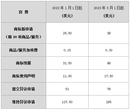 涉及商標相關(guān)業(yè)務(wù)的最新收費以及實施階段具體如下(依據(jù)2022 年 12 月 27 日的匯率):