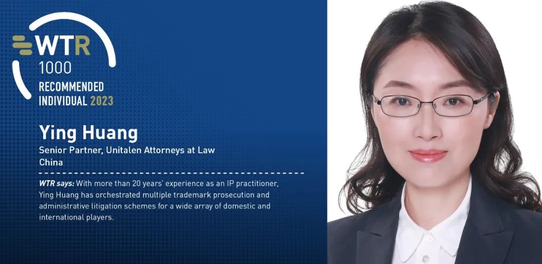 WTR評(píng)價(jià):“黃鶯律師擁有超過20年知識(shí)產(chǎn)權(quán)從業(yè)經(jīng)驗(yàn),曾為眾多國內(nèi)企業(yè)和來自歐洲、韓國、南非和美國的國際企業(yè)策劃商標(biāo)申請(qǐng)和行政訴訟方案。”