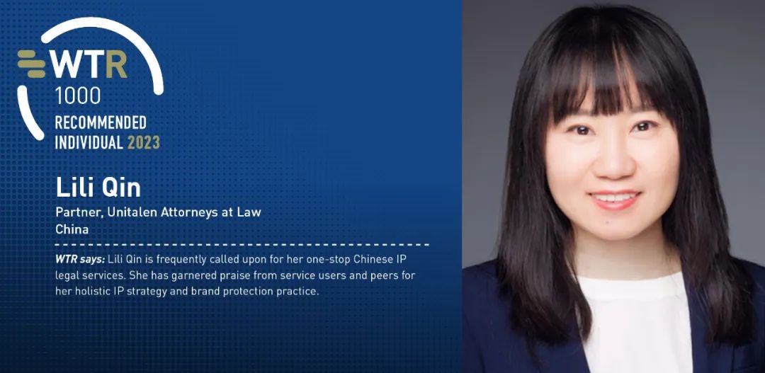 WTR評(píng)價(jià):“WTR1000的新秀秦麗麗律師曾為VISA、超微和星展銀行等提供一站式中國知識(shí)產(chǎn)權(quán)法律服務(wù),并以全面的知識(shí)產(chǎn)權(quán)戰(zhàn)略和品牌保護(hù)實(shí)踐贏得了客戶和同行的贊譽(yù)。”