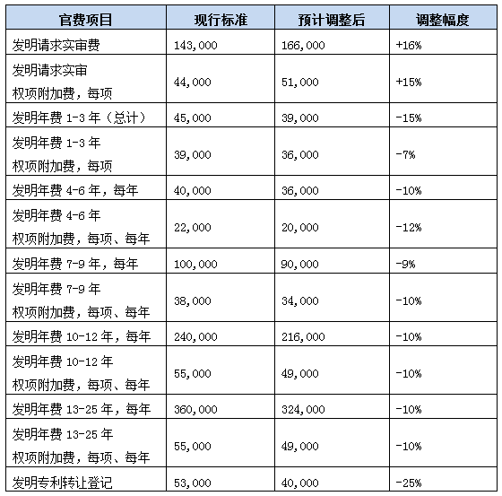 本次計劃調(diào)整的專利官費項目主要內(nèi)容,如下: