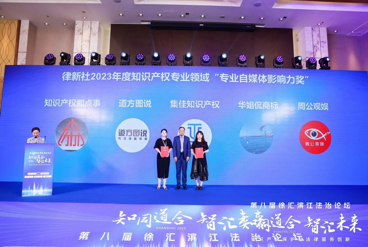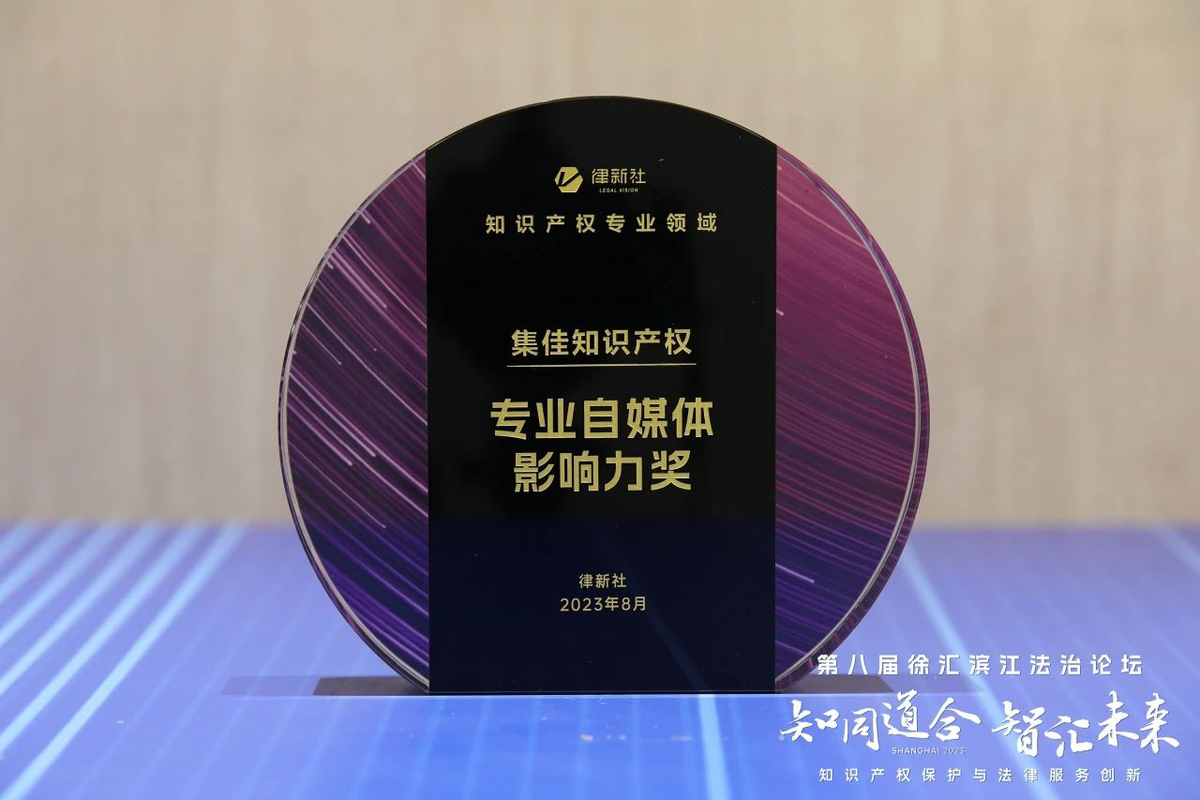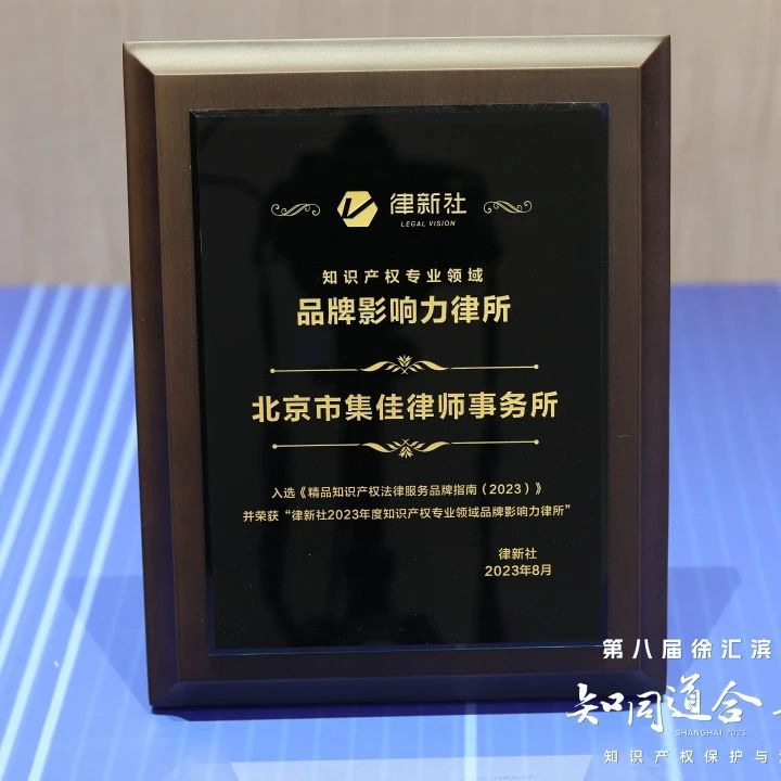 論壇上,主辦方律新社首次發(fā)布了《精品知識(shí)產(chǎn)權(quán)法律服務(wù)品牌指南(2023)》,并在申報(bào)與調(diào)研的基礎(chǔ)上,綜合專家評(píng)審會(huì)、同行評(píng)價(jià)、客戶評(píng)價(jià)等多方信息,根據(jù)專業(yè)服務(wù)及品牌表現(xiàn),隆重頒發(fā)律新社2023年度知識(shí)產(chǎn)權(quán)專業(yè)領(lǐng)域“品牌影響力律所”和“品牌之星”律師榮譽(yù)。北京市集佳律師事務(wù)所憑借卓越的綜合實(shí)力和豐富的訴訟經(jīng)驗(yàn)入選“品牌影響力律所”榜單,集佳律所主任、合伙人李永波律師與合伙人閆春德律師被授予“實(shí)力律師”榮譽(yù)稱號(hào),合伙人侯玉靜律師被授予“匠心律師”榮譽(yù)稱號(hào),“集佳知識(shí)產(chǎn)權(quán)”公眾號(hào)獲評(píng)“專業(yè)自媒體影響力獎(jiǎng)”。