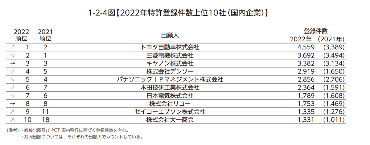 前10大日本國內企業(yè)發(fā)明專利注冊量: