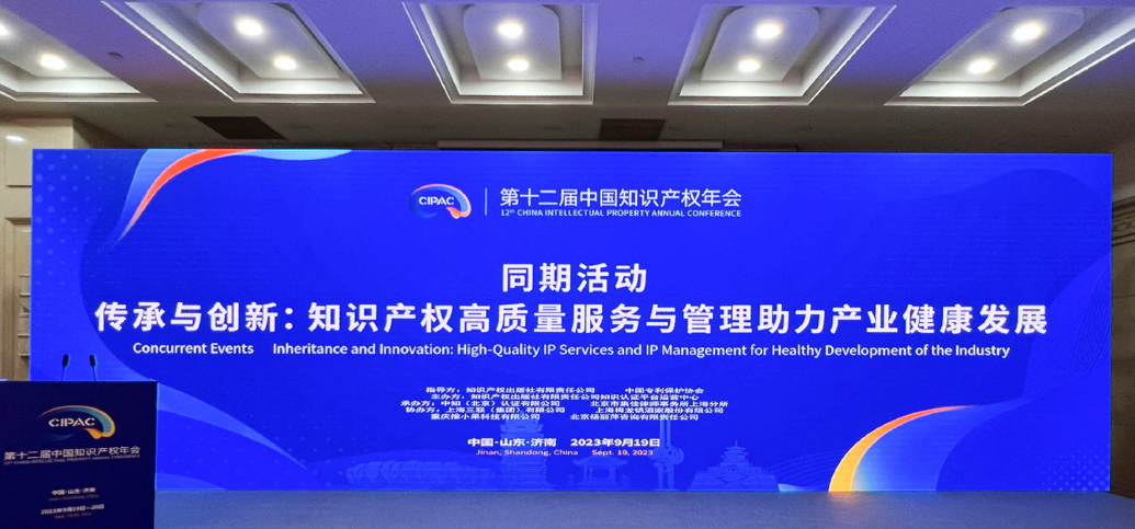 2023年9月19日,第十二屆中國知識(shí)產(chǎn)權(quán)年會(huì)在山東濟(jì)南隆重開幕,會(huì)議吸引了8000多位中外嘉賓齊聚泉城。下午,由知識(shí)產(chǎn)權(quán)出版社有限責(zé)任公司、中國專利保護(hù)協(xié)會(huì)指導(dǎo),知識(shí)產(chǎn)權(quán)出版社有限責(zé)任公司知識(shí)認(rèn)證平臺(tái)運(yùn)營中心主辦,中知(北京)認(rèn)證有限公司、北京市集佳律師事務(wù)所上海分所承辦,上海三聯(lián)(集團(tuán))有限公司、上海梅龍鎮(zhèn)酒家股份有限公司等公司協(xié)辦的同期活動(dòng)“傳承與創(chuàng)新:知識(shí)產(chǎn)權(quán)高質(zhì)量服務(wù)與管理助力行業(yè)健康發(fā)展”論壇在山東大廈青島廳成功舉辦。