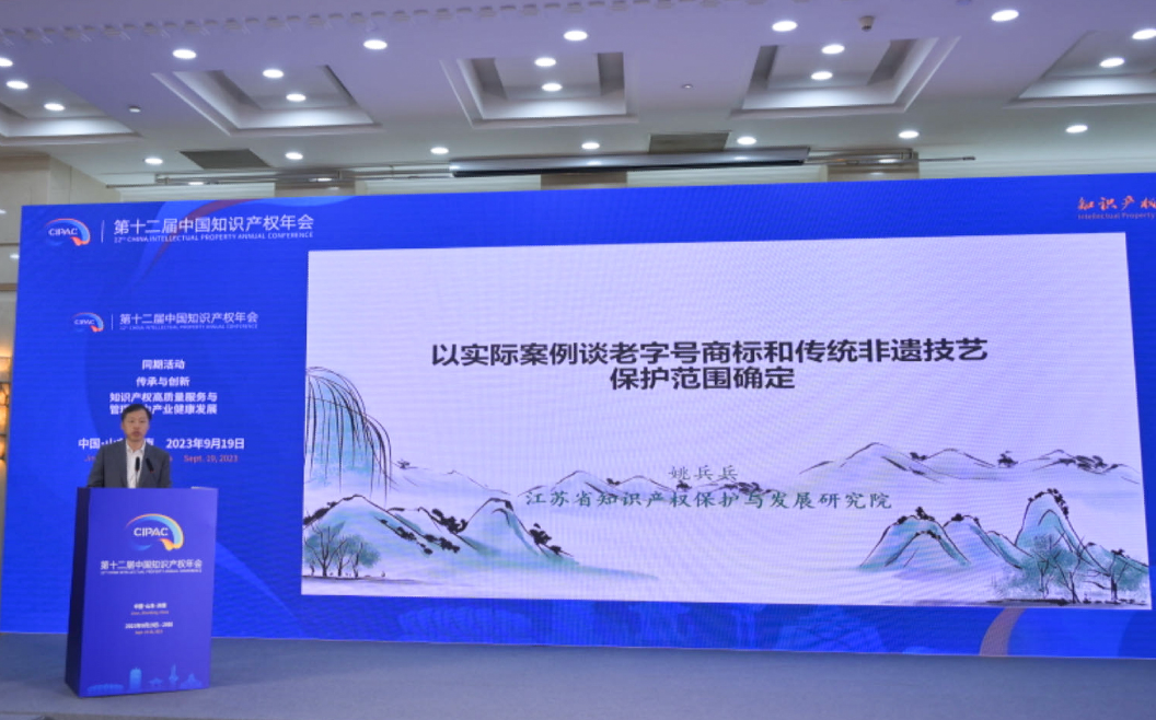 江蘇省知識(shí)產(chǎn)權(quán)保護(hù)與發(fā)展研究院姚兵兵院長發(fā)表了題為《以實(shí)際案例談老字號(hào)商標(biāo)和傳統(tǒng)非遺技藝保護(hù)范圍確定》的主題演講,通過對(duì)“蔣有記”案、“福壽三多絨花”案的解讀,梳理了老字號(hào)和非物質(zhì)文化遺產(chǎn)保護(hù)范圍的司法動(dòng)向。