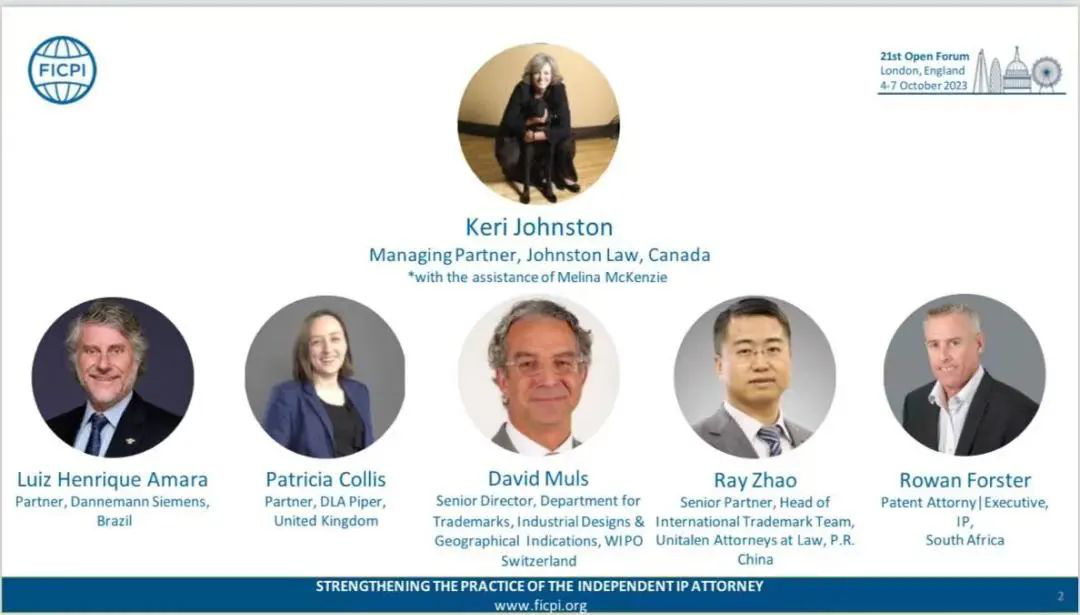 2023年10月4-7日,第21屆國(guó)際知識(shí)產(chǎn)權(quán)律師聯(lián)合會(huì)公開論壇(The FICPI 21st Open Forum)在英國(guó)倫敦盛大舉行,集佳合伙人趙雷律師應(yīng)邀參加論壇并作為專家組專家參加了10月5日關(guān)于“多邊知識(shí)產(chǎn)權(quán)條約的發(fā)展”議程的專家討論環(huán)節(jié),并發(fā)表演講。