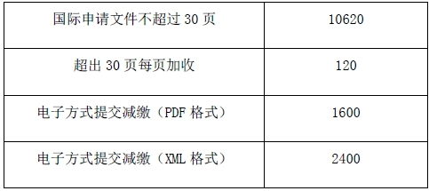 PCT申請國際階段費用標準 (金額單位:人民幣 元)