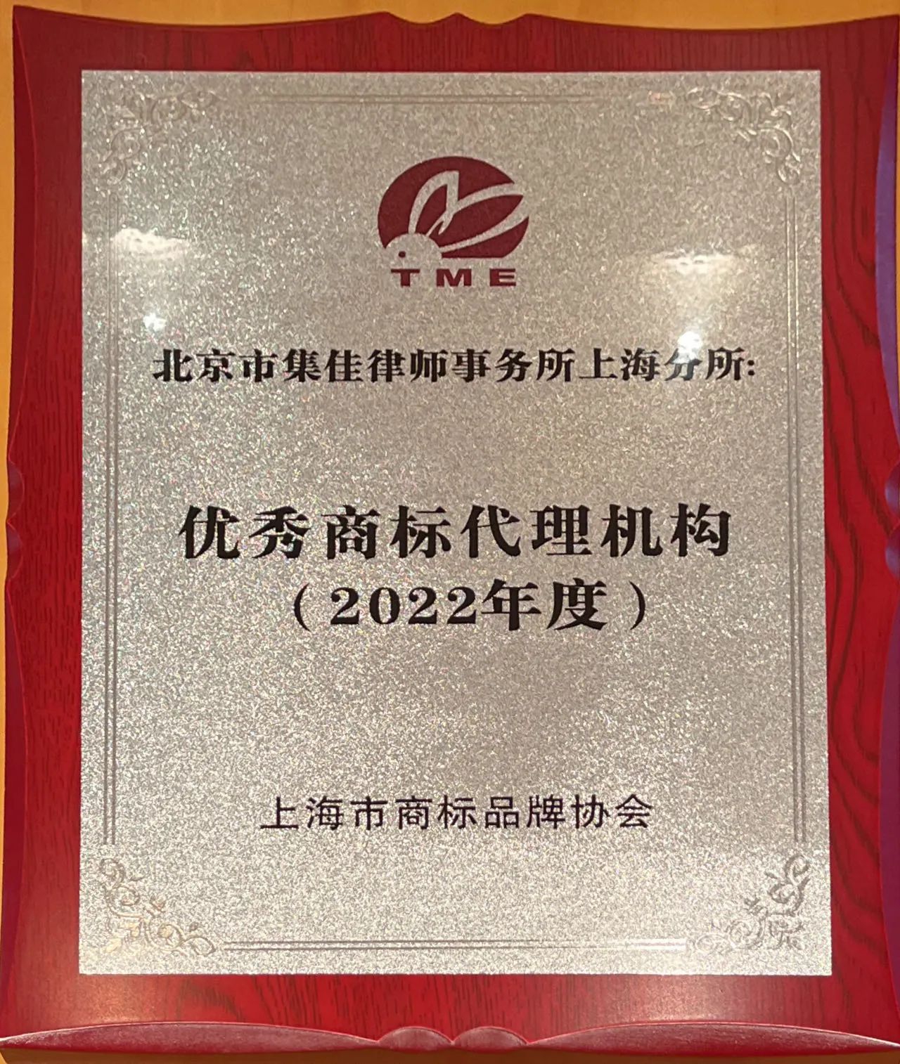 集佳上海分所被評為2022年度“上海市優(yōu)秀商標(biāo)代理機構(gòu)”。