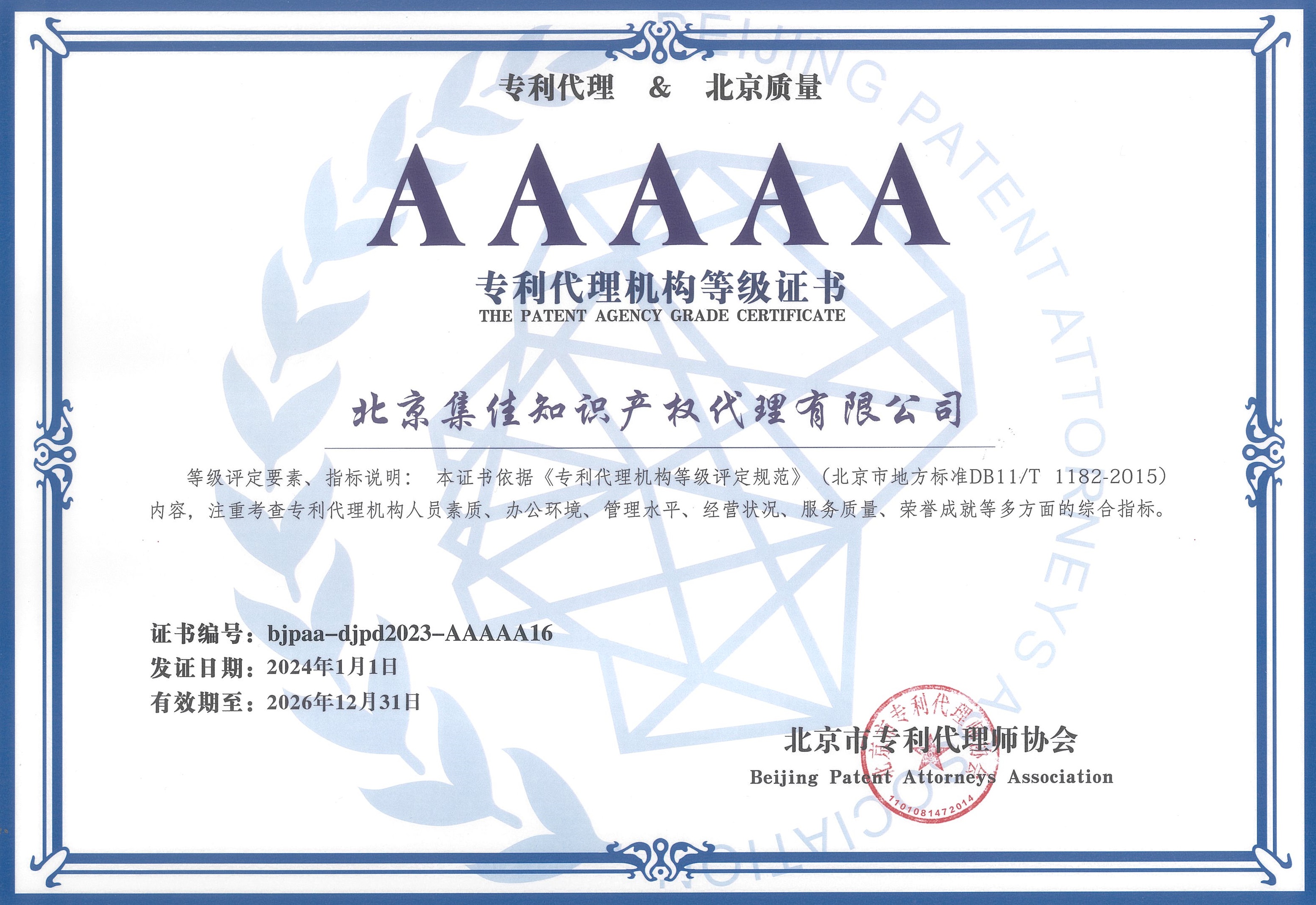 近日,北京市專(zhuān)利代理師協(xié)會(huì)發(fā)布2023年專(zhuān)利代理機(jī)構(gòu)等級(jí)評(píng)定結(jié)果,北京集佳知識(shí)產(chǎn)權(quán)代理有限公司憑借穩(wěn)健的綜合實(shí)力獲得各界肯定,再次獲評(píng)最高等級(jí)——AAAAA級(jí)專(zhuān)利代理機(jī)構(gòu)。