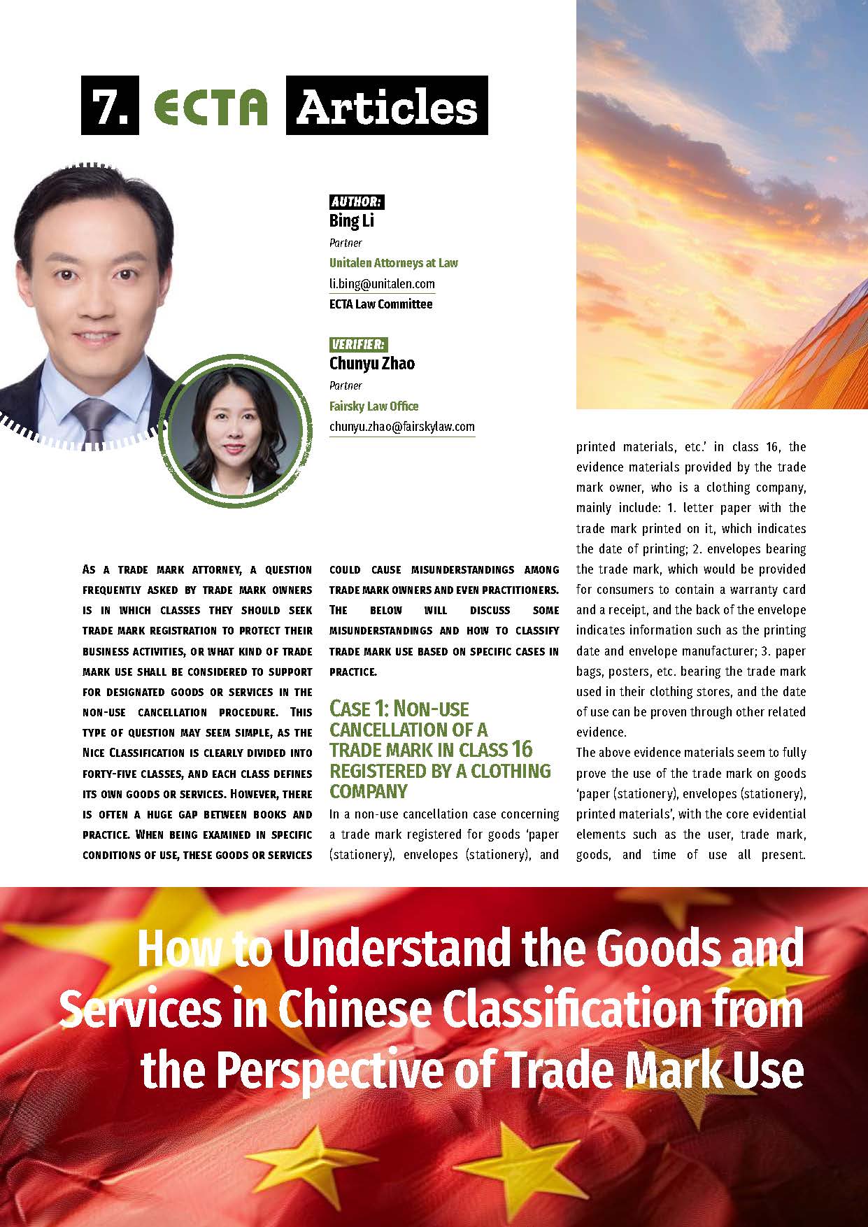 集佳文章《How to Understand the Goods and Services in Chinese Classification from the Perspective of Trade Mark Use》在《ECTA》發(fā)表