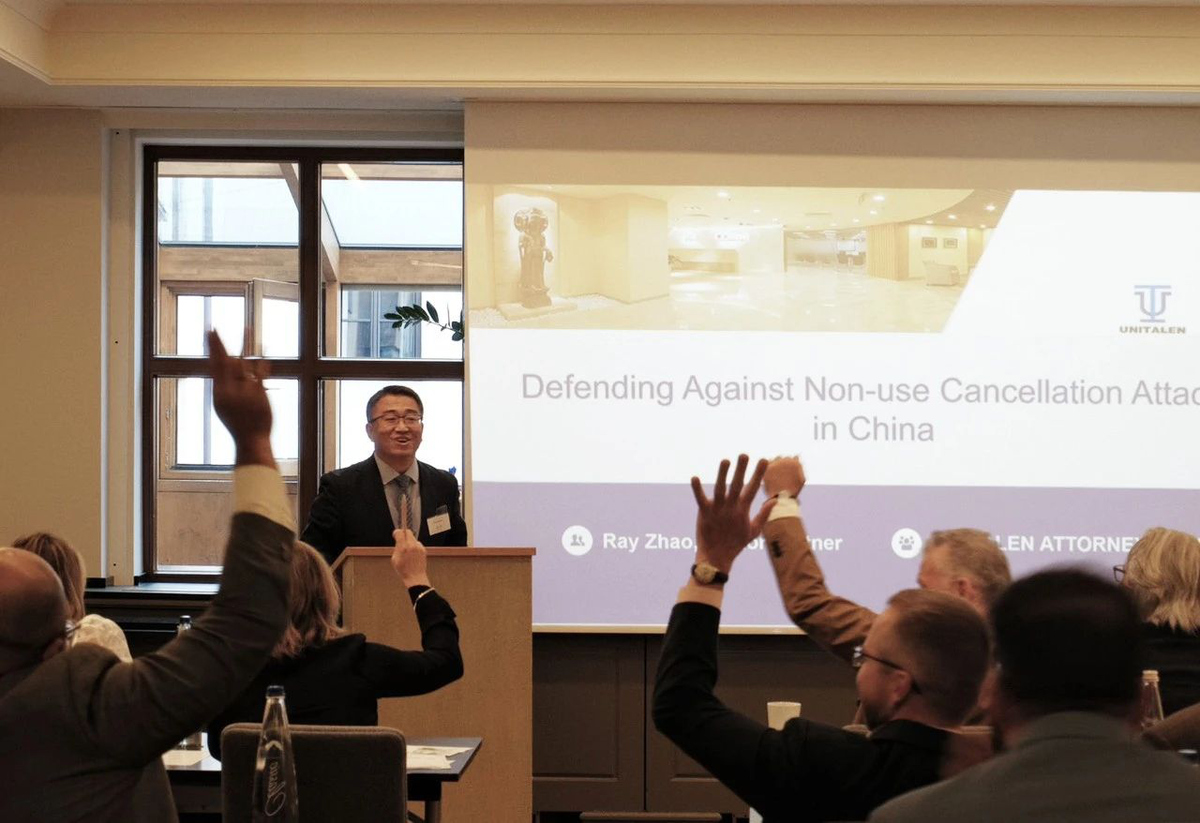 趙雷律師從“面對商標(biāo)未使用撤銷的攻擊,如何進行防御”這一角度,為與會嘉賓詳解在中國開展商標(biāo)保護應(yīng)采取的措施。他通過詳實的案例從使用證據(jù)的基本要求、使用證據(jù)的高階要求、收集證據(jù)的多個角度等方面,對商標(biāo)的正確使用方法和不當(dāng)使用誤區(qū)進行深入分析,并強調(diào)在中國的實踐中非常重視銷售和廣告文件以及證據(jù)鏈的完整性。趙雷律師還在多年實務(wù)經(jīng)驗的基礎(chǔ)上總結(jié)出提高成功幾率的一些重要做法和策略,干貨滿滿,引起了現(xiàn)場聽眾的廣泛關(guān)注?,F(xiàn)場嘉賓紛紛發(fā)起提問,趙雷律師對相關(guān)問題提出專業(yè)建議,為在場聽眾留下了深刻印象,也增進了國際同仁對中國知識產(chǎn)權(quán)保護的了解和信心。