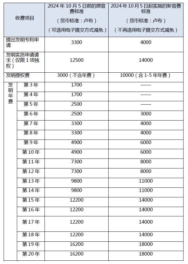 本次官費(fèi)調(diào)整情況,涉及發(fā)明專利的內(nèi)容主要如下: