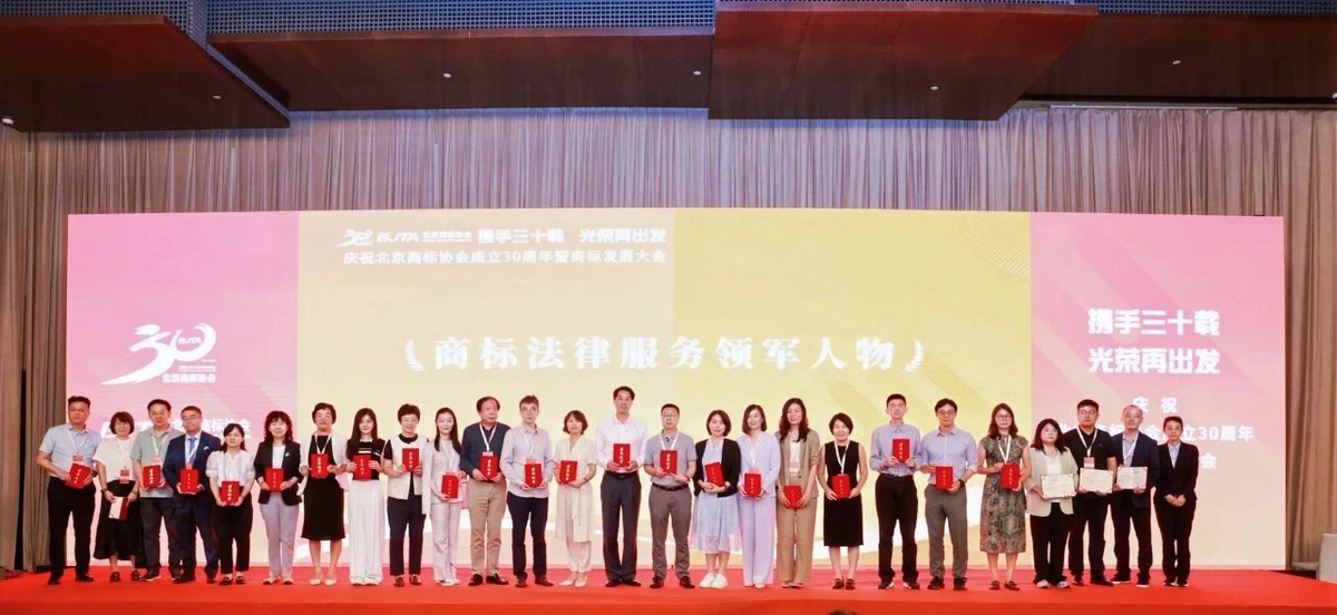 2025年8月8日晚,在北京商標協(xié)會成立30周年暨商標發(fā)展大會的頒獎儀式上,北京商標協(xié)會向多年來對北京商標發(fā)展事業(yè)以及對協(xié)會發(fā)展作出積極貢獻的團體與個人頒發(fā)榮譽證書。集佳知識產權憑借在商標代理領域的杰出實力與良好口碑攬獲多項榮譽。